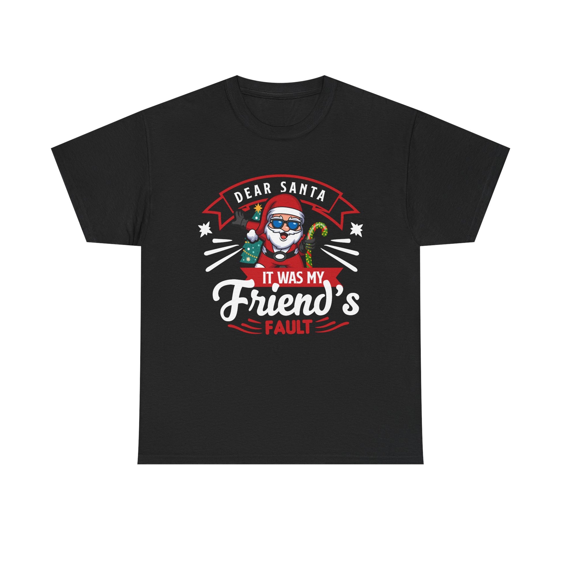 The Gildan 5000 heavy cotton tee is a dependable classic made for everyday wear and custom printing. Its 100% cotton fabric is tightly knit to give designs sharper detail and long-lasting color. The seamless body eliminates side seams for a smoother fit, while reinforced shoulders keep the shirt in shape through repeated washes. Durable, comfortable, and print-friendly, the Gildan 5000 is a trusted staple for personalized apparel.aWelcome the holiday season with this timeless and festive T-Shirt! Featuring a beautiful, classic Christmas slogan like "Dear Santa It Was My Friend's Fault" This shirt is the perfect way to spread peace and cheer.