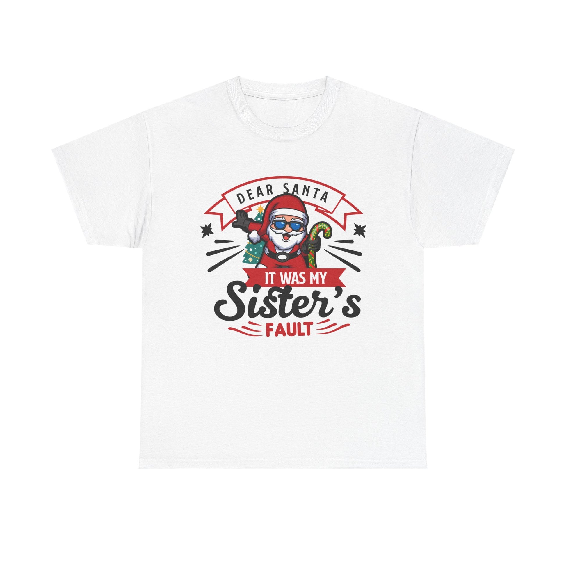 Welcome the holiday season with this timeless and festive T-Shirt! Featuring a beautiful, classic Christmas slogan like "Dear Santa It Was My Sister's Fault" This shirt is the perfect way to spread peace and cheer.
